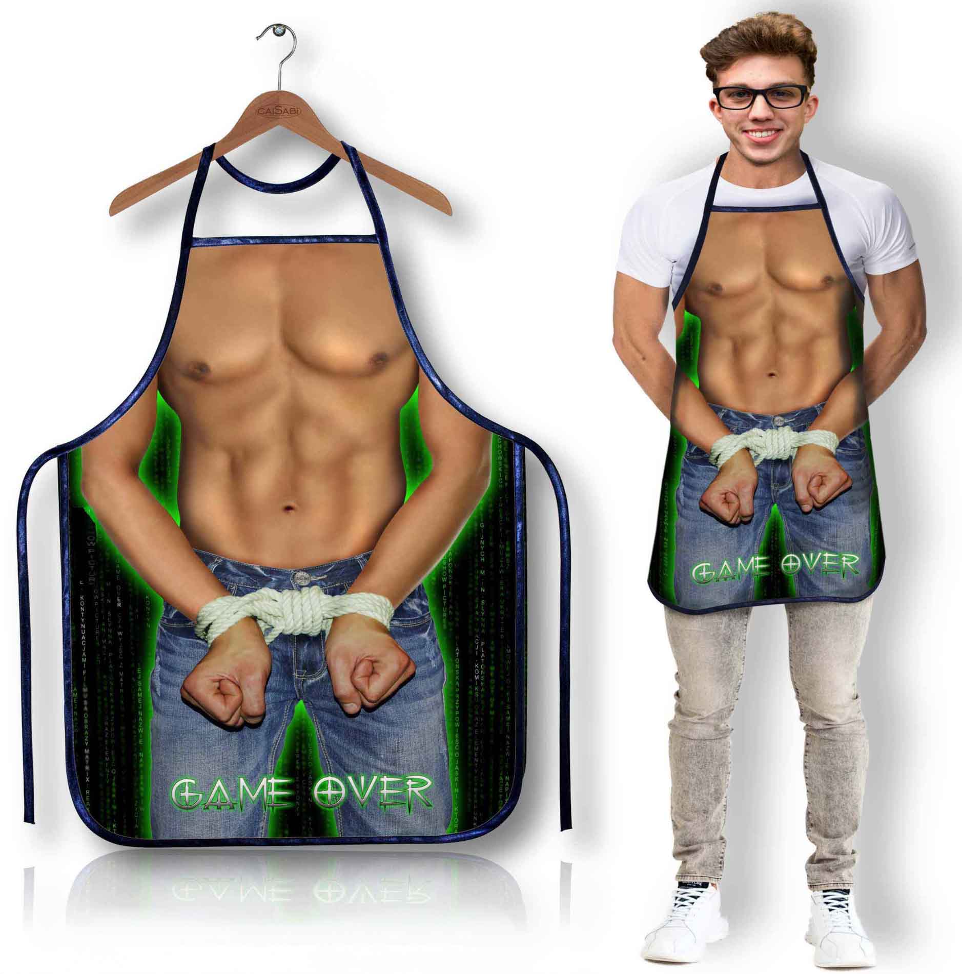 Чоловічий друкований фартух «BIG BOSS»! Коли білу тканину піднімають перед колінами, ерегований ...